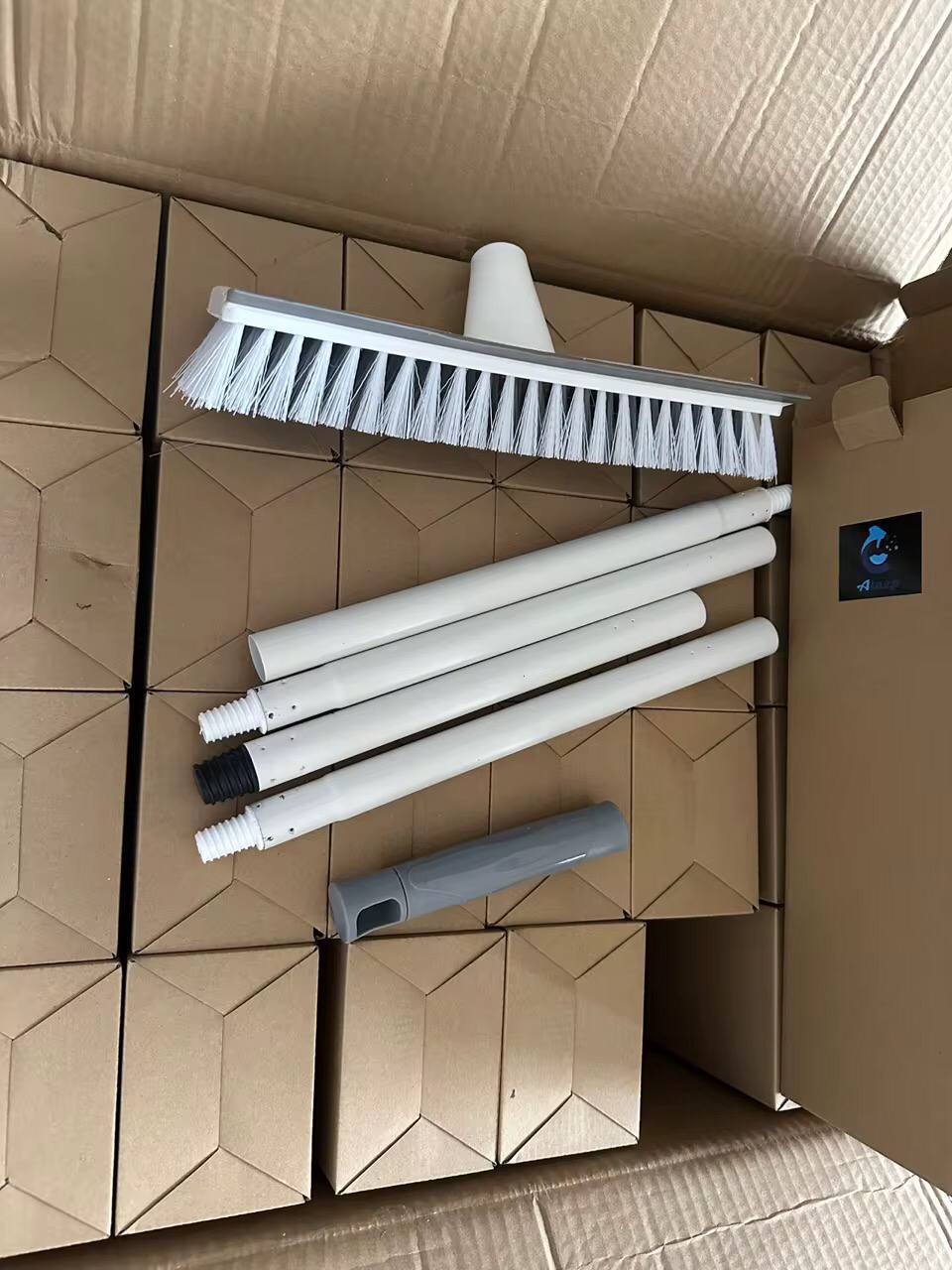 2-in-1 floor brush scrubber with long handle—features stiff bristles for deep cleaning and built-in squeegee for drying. Durable and versatile, perfect for tiles, floors, bathrooms, and patios. Ergonomic design makes scrubbing effortless and efficient.