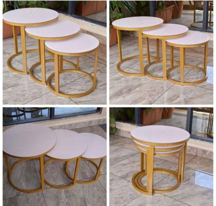 Elevate your space with this 3-in-1 nesting stool set. Sleek glass tops and varying heights (60, 50, 40 cm) offer versatile style and functionality, perfect for modern living, compact spaces, or stylish display.