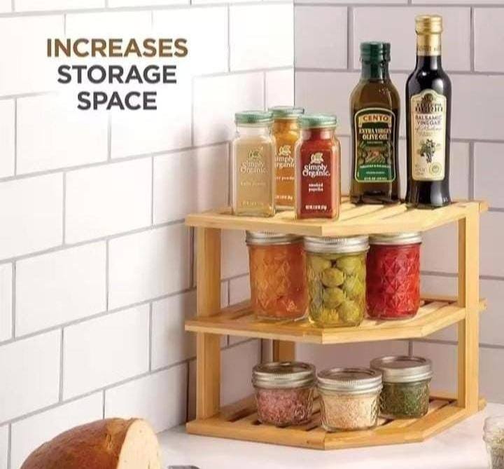 3 tier CORNER BAMBOO KITCHEN STORAGE SPICE RACK