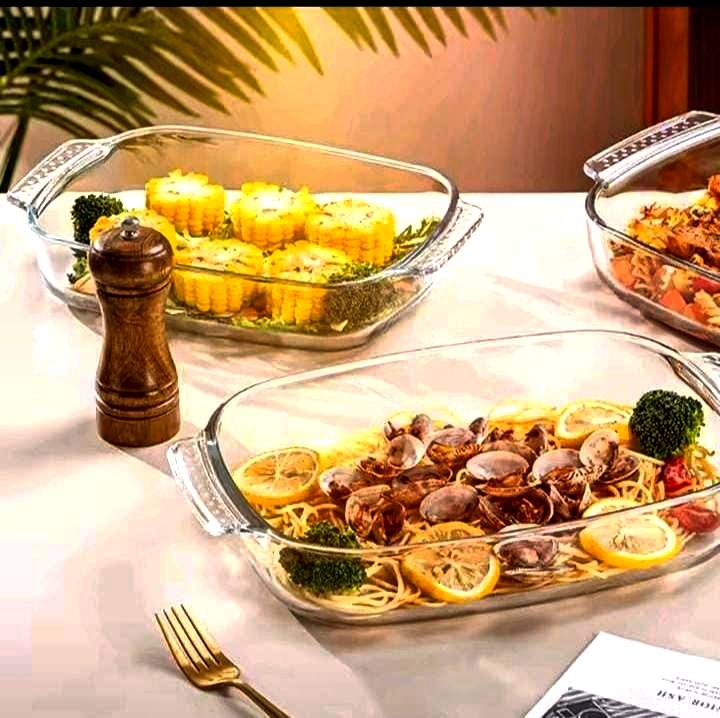 Cook, serve, and store with ease using this 3pcs glass casserole set. Microwaveable and oven-safe, with capacities of 1L, 1.6L, and 2.2L—durable, versatile, and perfect for baking, reheating, or elegant table serving.