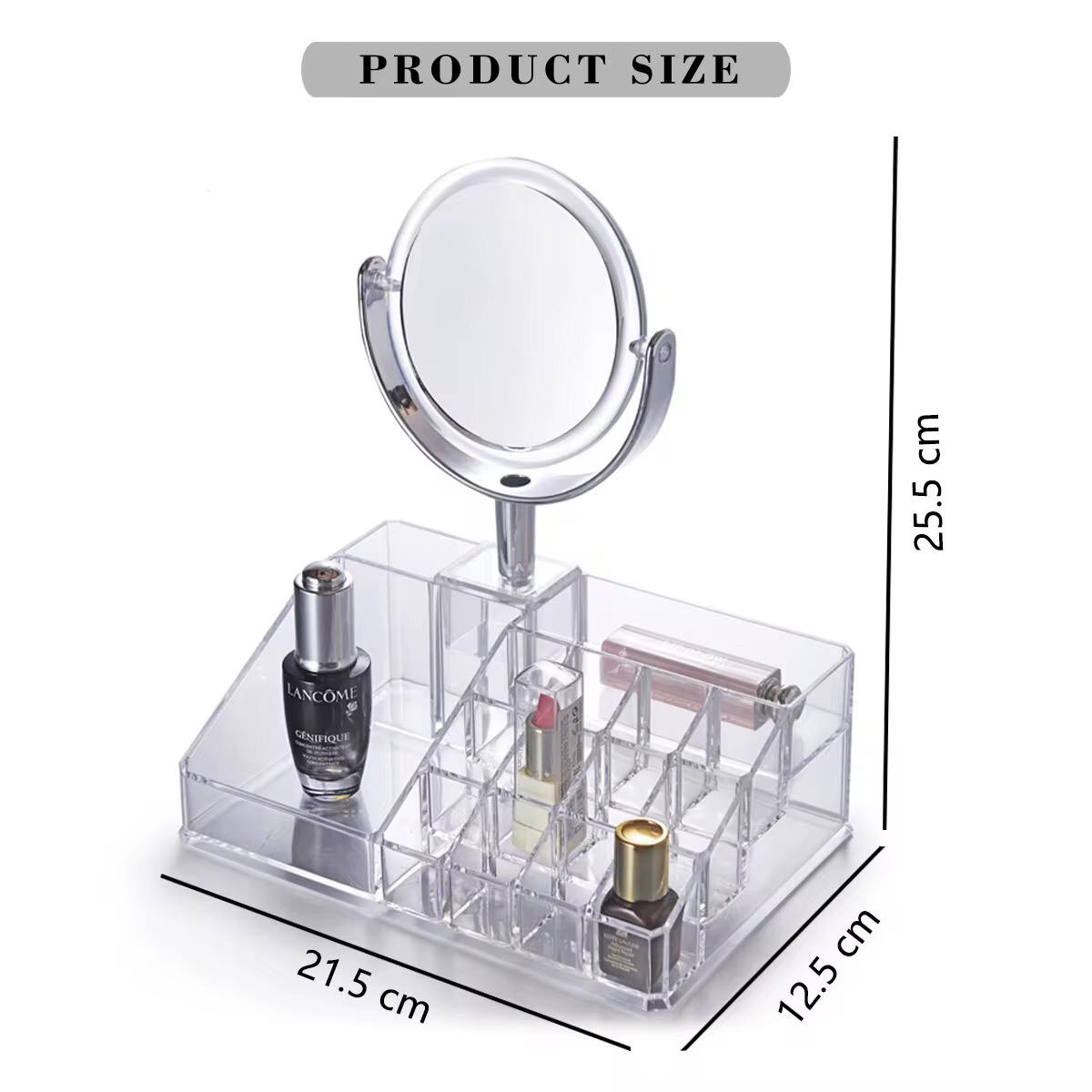 Keep your essentials tidy with this acrylic cosmetic organiser. Featuring a detachable mirror and ample compartments, it’s perfect for cosmetics, jewelry, and accessories. Clear, stylish, and space-saving — an elegant solution for organized beauty storage.