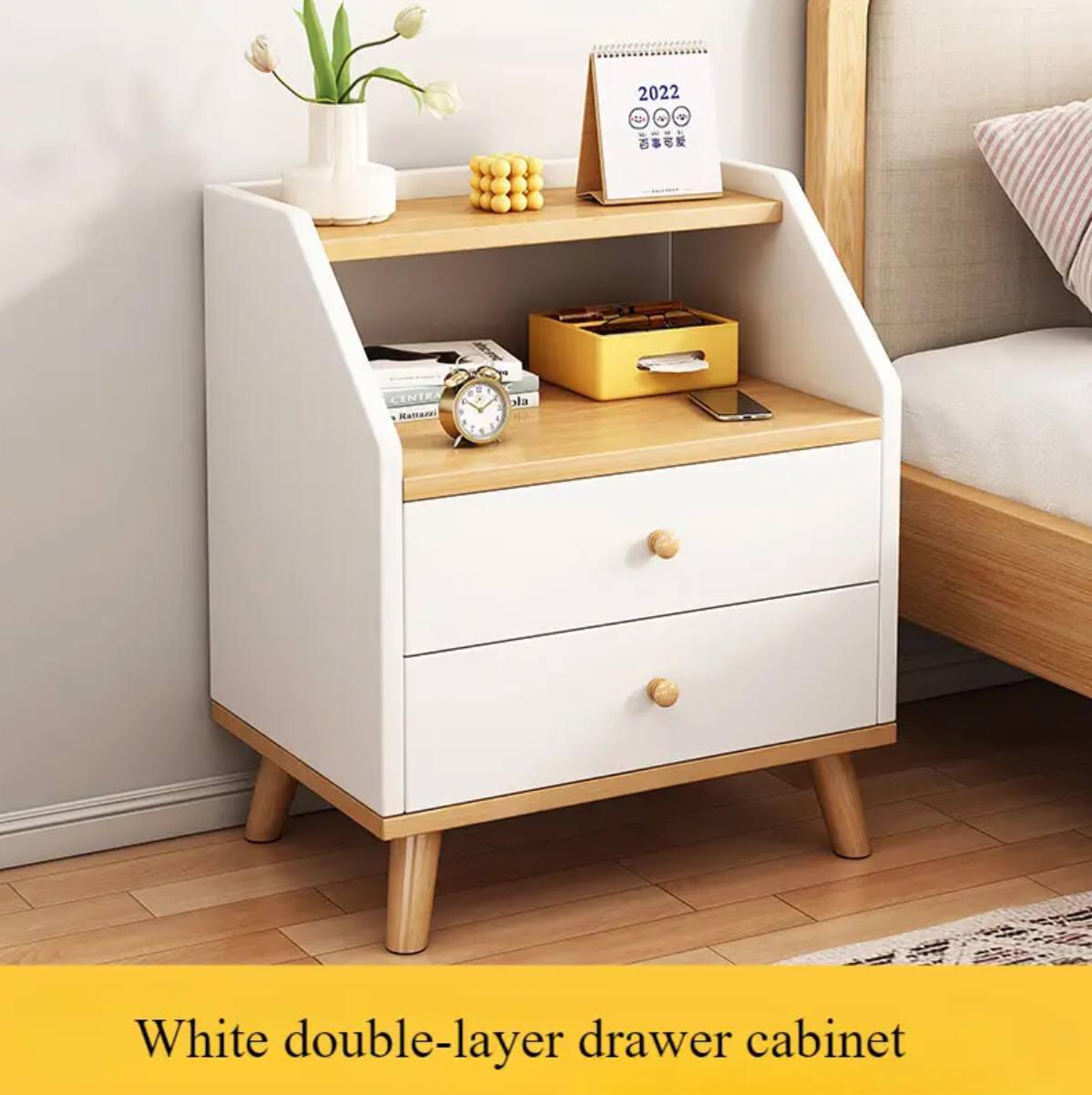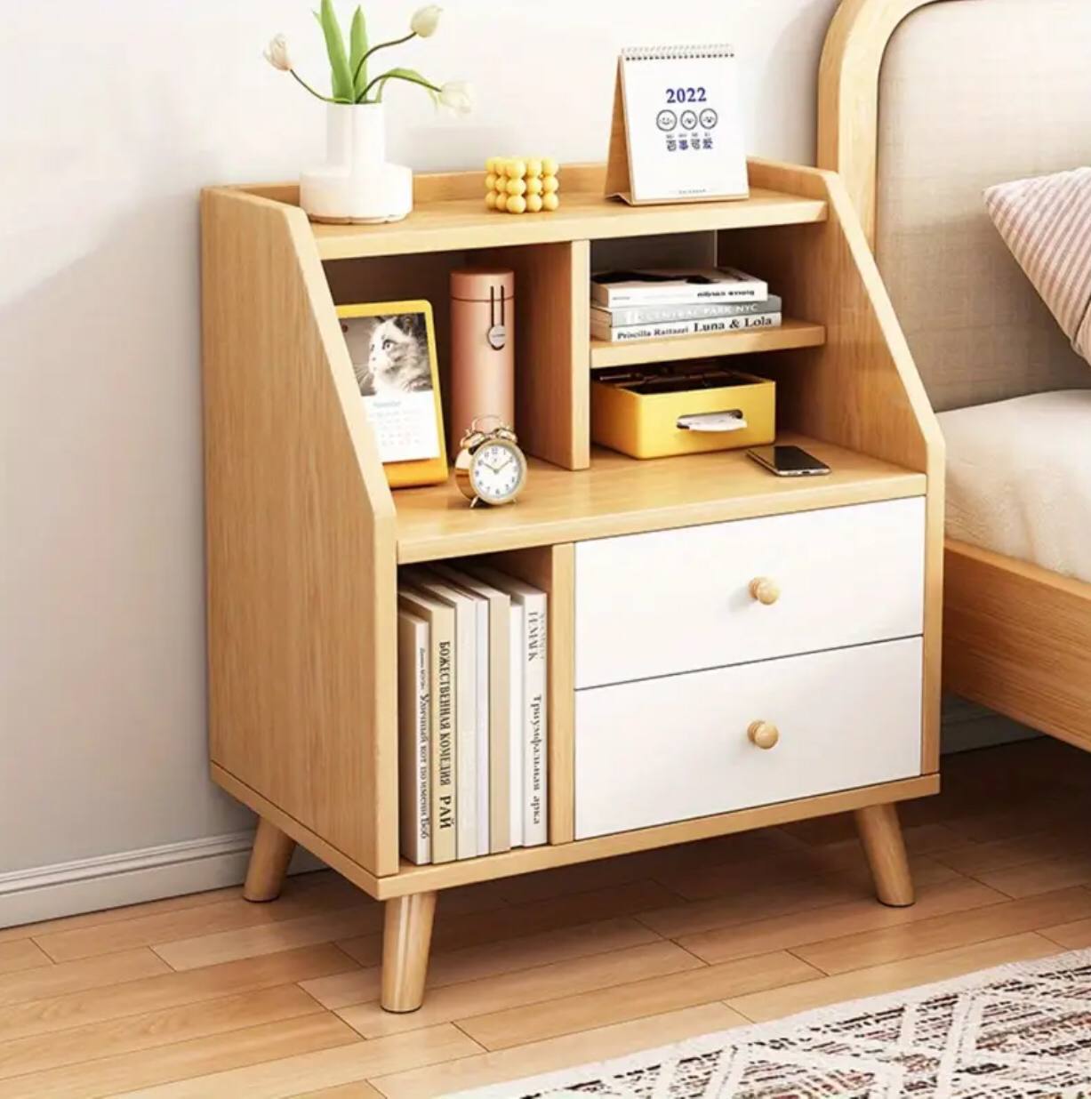 Upgrade your space with this stylish bedside table! Featuring compartments for decor, books, and essentials, plus a shelf for easy access items. Two spacious drawers provide hidden storage for a clutter-free look. Available in white and beige—functional and elegant!
