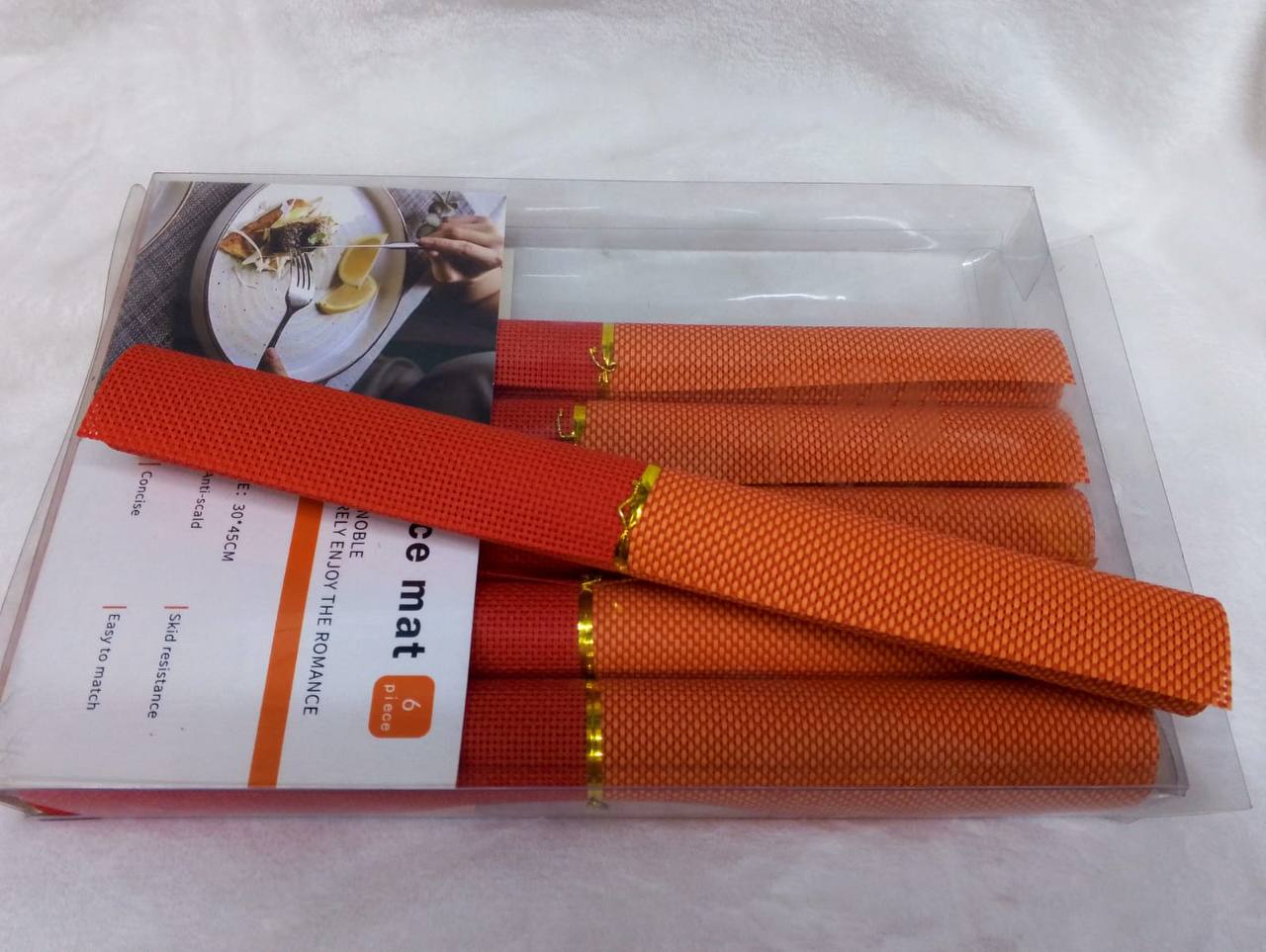 Enhance your dining experience with this 6-piece set of stylish table placemats. Measuring 30*45cm, they protect surfaces while adding elegance to every meal. Perfect for daily use or special occasions—durable, practical, and beautifully designed.