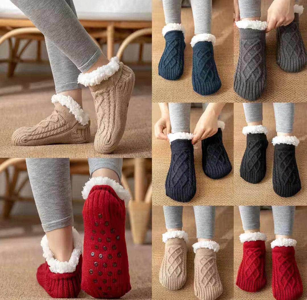 Stay warm and cozy with Indoor Socks with Fleece Lining. Featuring thermal fuzzy fleece for ultimate warmth and non-slip grippers for safety, they’re soft, stylish, and perfect for lounging at home during the coldest days.