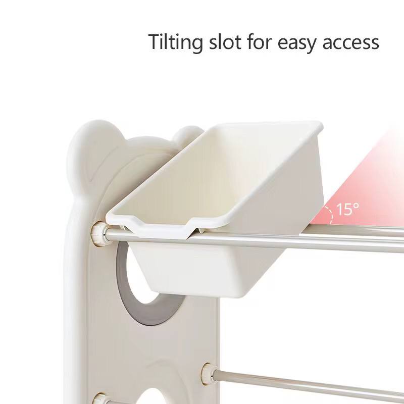 Organize playtime with this kids’ space toy storage organizer. Features 10 removable plastic bins, 4 tiers, and a modern design. Perfect for toys, books, and supplies in playrooms, nurseries, or daycare. Dimensions: 105×34.5×91.5cm.