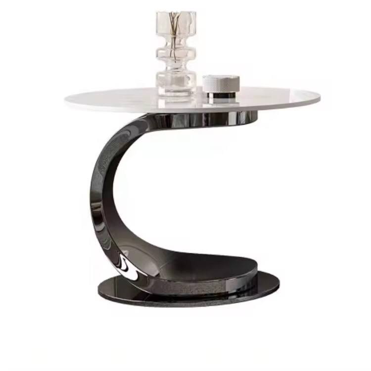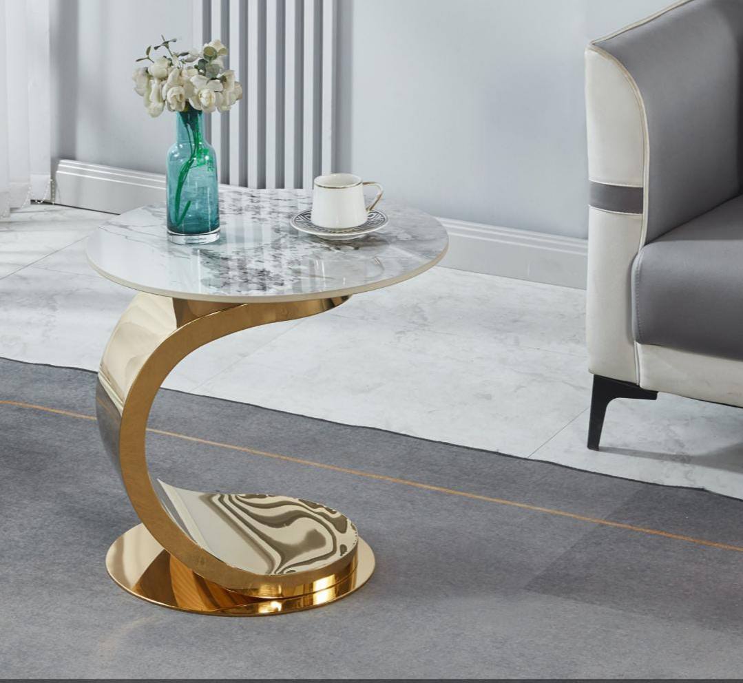 Elevate your living space with this luxurious C-shaped end table. Featuring a stunning marble top and sleek design, it offers both style and functionality—perfect for drinks, books, or decorative accents in any room."