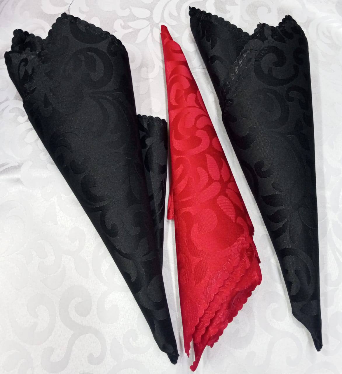 Enhance your dining experience with this set of six luxurious 48×48 cm napkins. Available in White, Gold, Black, Red, and Royal Blue, they add elegance, style, and a touch of sophistication to every meal or occasion.
