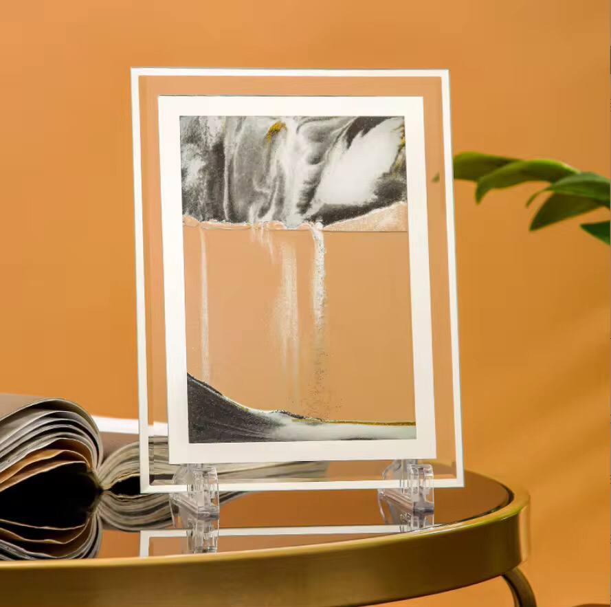 Experience endless beauty with this 17*23 moving art sandscape. Watch calming sands flow into stunning landscapes, offering relaxation and visual delight. Perfect for home, office, or gifting—an elegant decorative piece that soothes the mind daily.