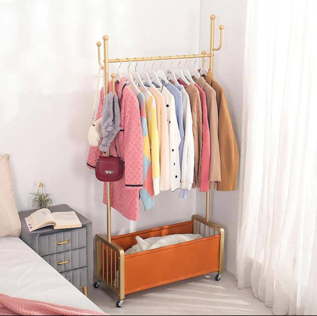 Spacious multi-purpose cloth rack, 100cm wide, designed with large capacity for efficient storage. Equipped with smooth-rolling wheels for easy mobility, this durable and portable rack is perfect for organizing clothes at home, in boutiques, or during events.