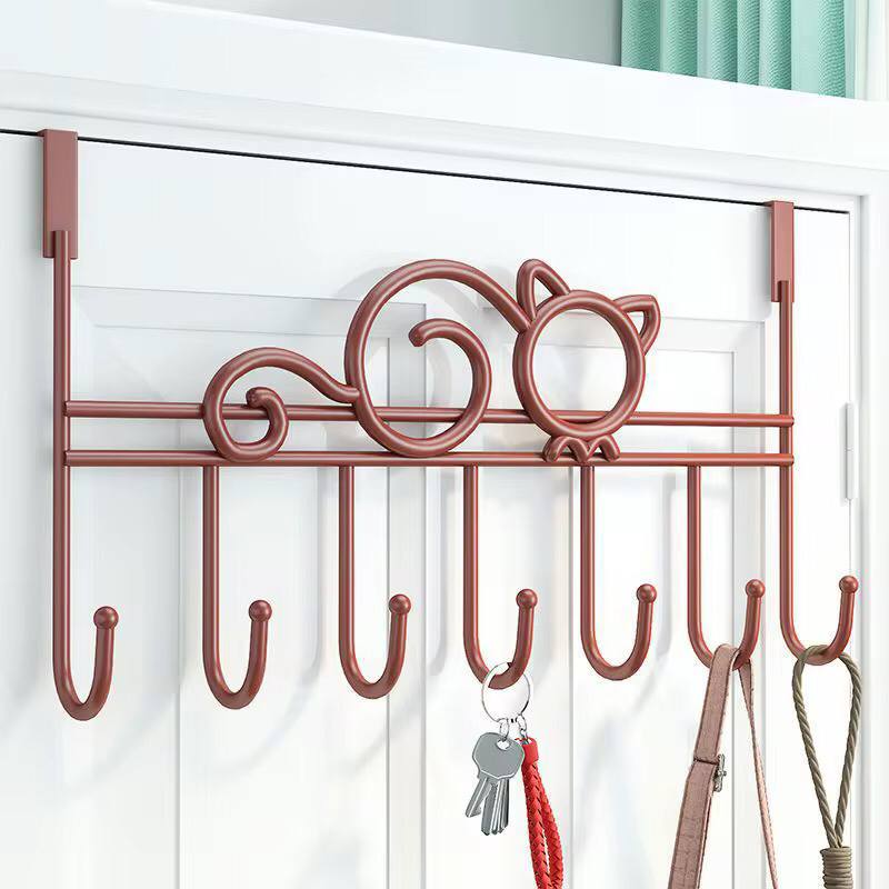 New design over-the-door hanger made from strong, high-quality iron. Features 7 sturdy hooks for coats, clothes, bags, belts, and more. Easy to install, space-saving, and stylish. Available in classic black or white finishes.