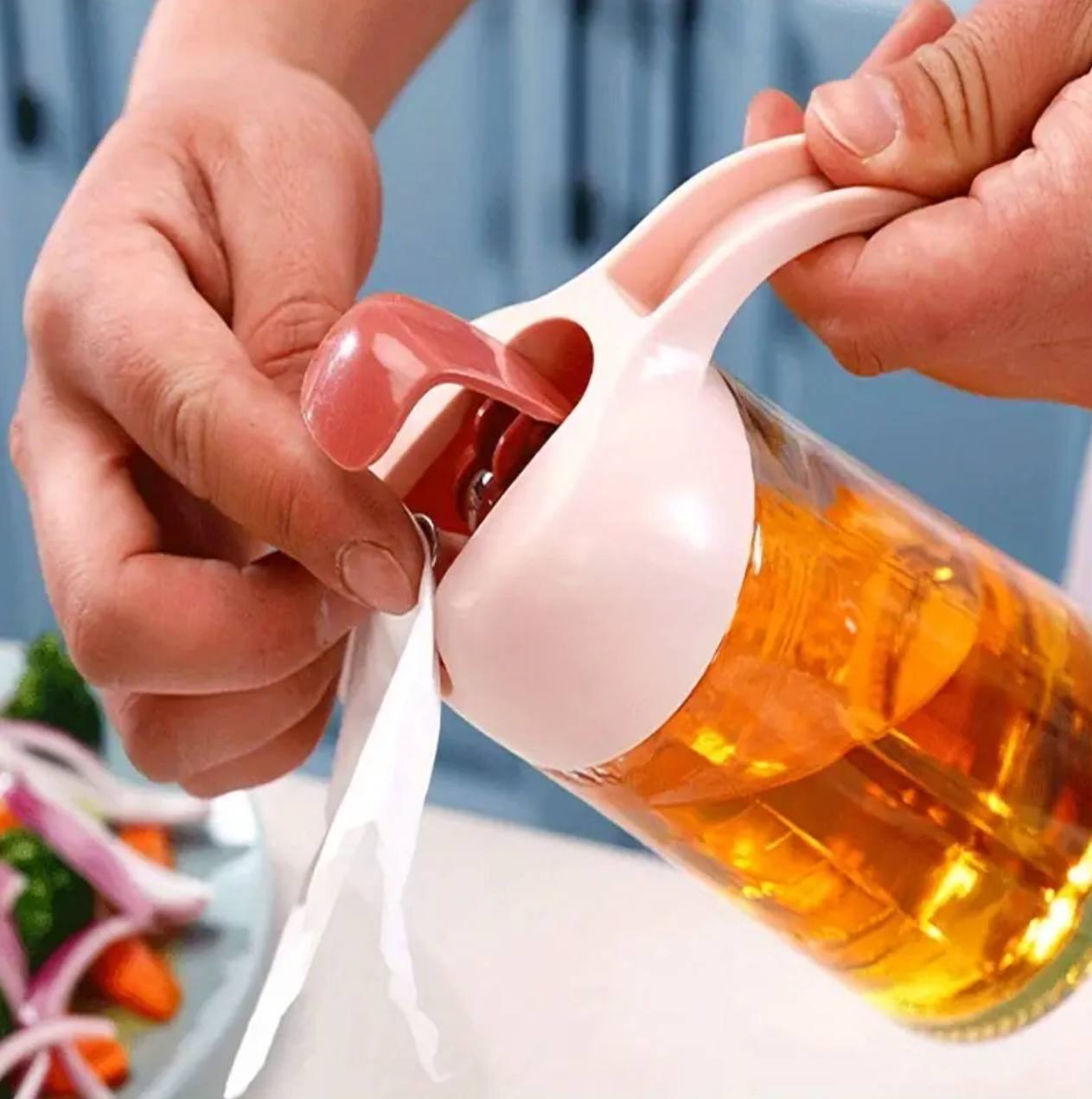 This 650ml non-slip oil/vinegar dispenser features an automatic cap and stopper for effortless pouring. The leakproof glass cruet ensures mess-free cooking, while its ergonomic design provides a secure grip, making it an ideal kitchen essential for precise seasoning.