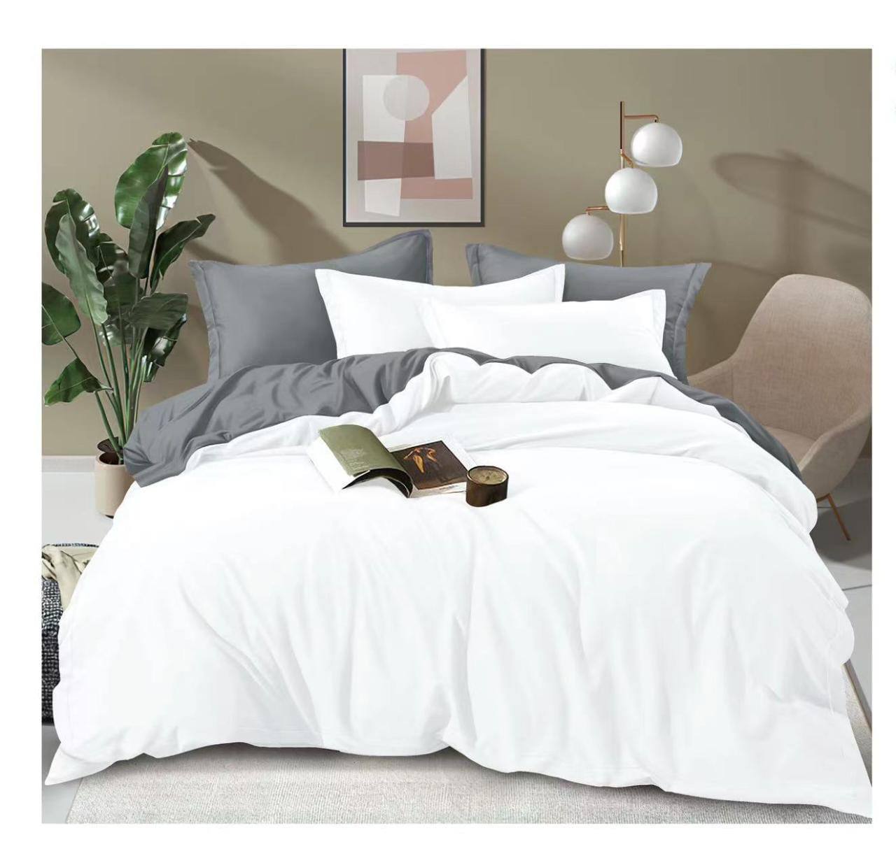 Upgrade your bedroom with our plain double-sided color cotton duvet cover set. Includes 1 duvet cover, 1 bedsheet, and 4 pillowcases. Available in multiple colors and sizes (46, 56, 66, 67) for timeless comfort.