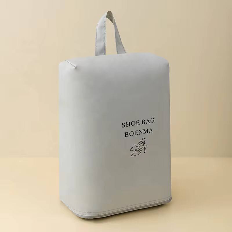 Portable travel shoe bag made from high-quality, durable material. Dustproof, waterproof, and convenient, it easily hooks inside your travel bag, keeping shoes organized and protected while on the go, perfect for trips and everyday use.