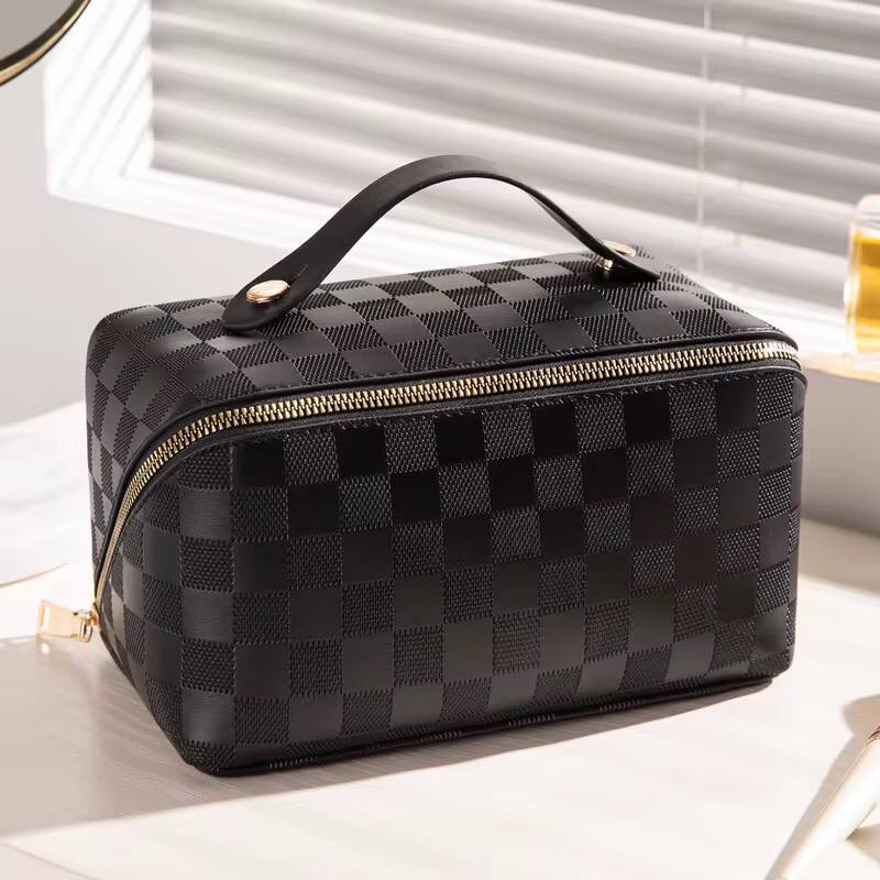 Multifunctional PU leather travel makeup bag with large capacity. Stylish, soft, and portable, featuring secure zipper closure. Perfect for cosmetics, toiletries, and gym essentials, combining fashion, durability, and convenience for fitness, travel, or everyday use.